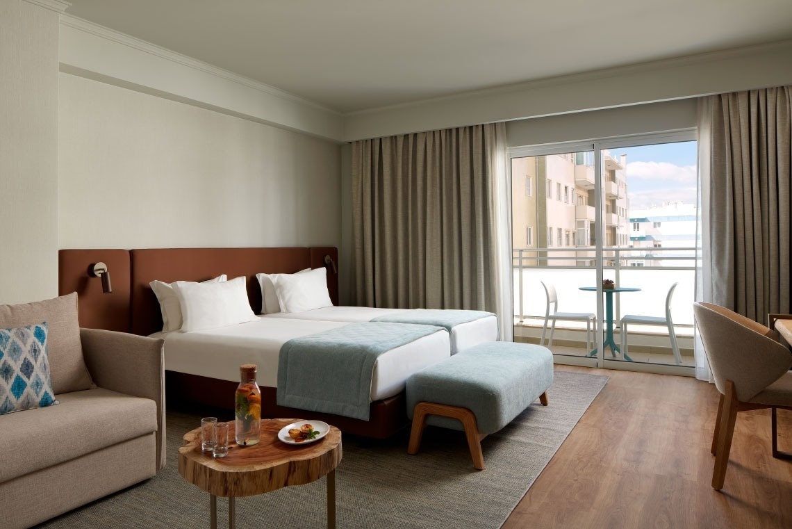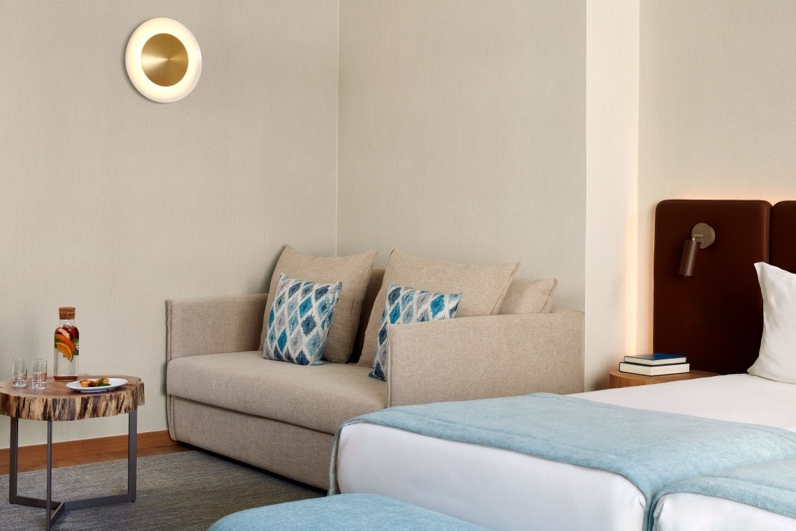 Chambres avec vue sur la ville, équipées de confort pour des vacances reposantes. D'une superficie de 18 m2, elle comprend la possibilité d'lits jumeaux ou un lit double. Un lit bébé (0-2 ans) peut également être ajouté.