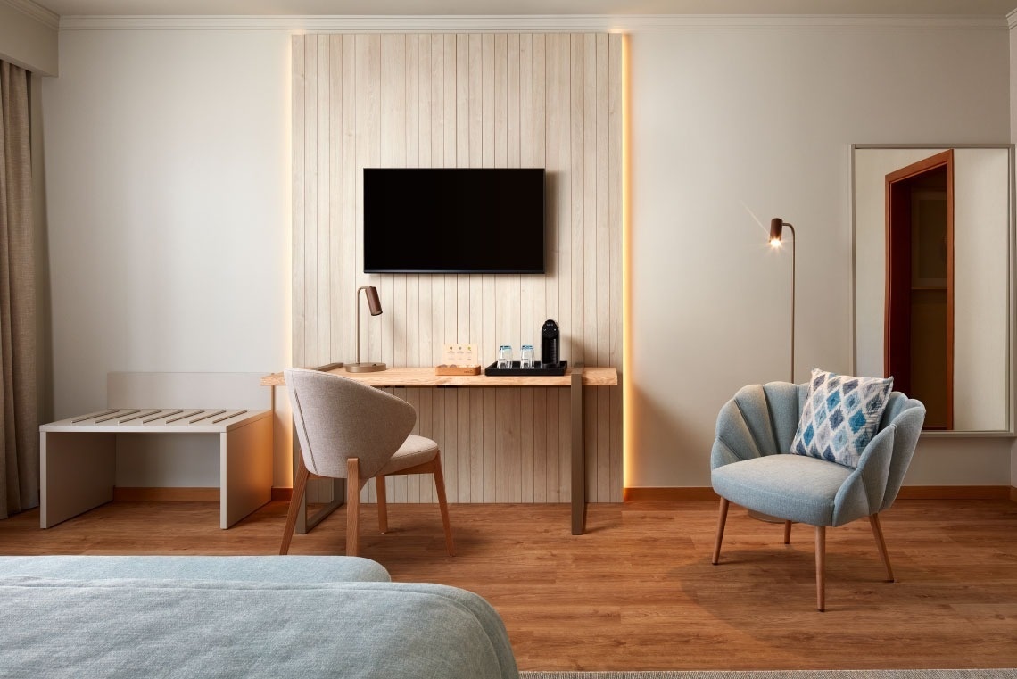 Équipement : Internet sans fil gratuit | Téléphone fixe | Coffre-fort numérique | Climatisation | Téléviseur LED 43´ | Mini-bar | Bouilloire | Prises de connexion USB et USB-C | Salle de bain avec douche ou baignoire | Sèche-cheveux | Agréments